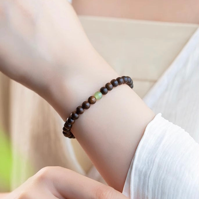 The Brunei Agarwood Hetian Jade Bracelet is a graceful spiritual bracelet that blends grounding wood with peaceful jade. Simple yet meaningful, it carries the energy of calmness, protection, and inner balance. Wear it as a quiet reminder to stay centered, gentle, and blessed through each day.