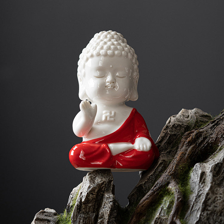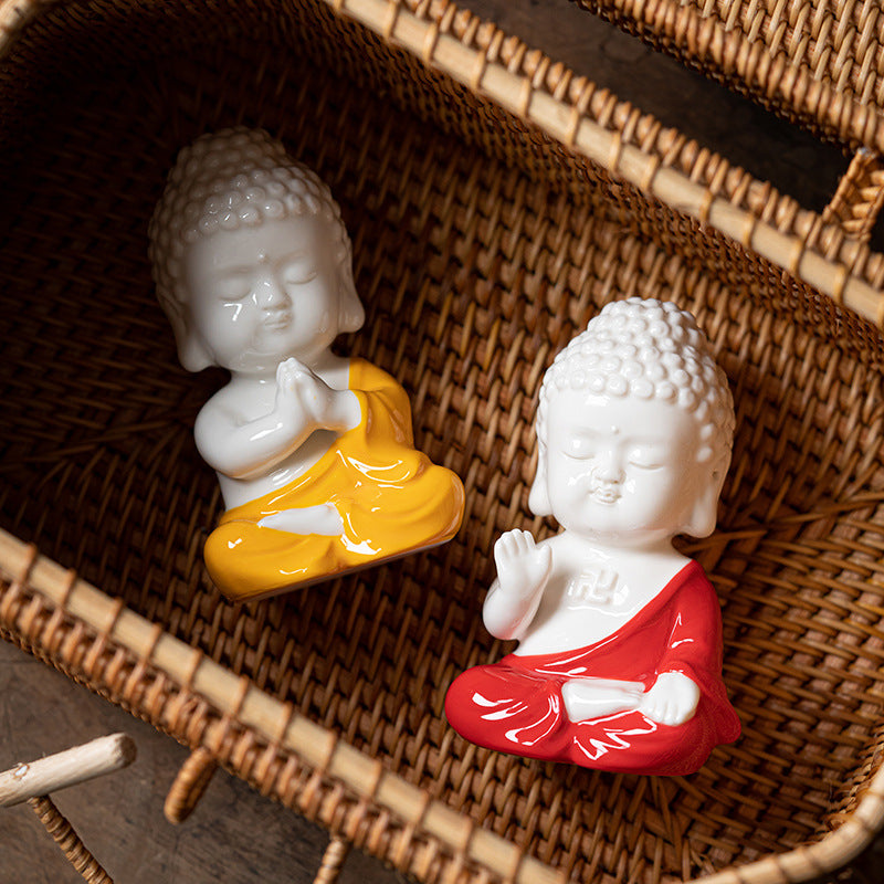 - Item Type: Zen Serenity Ceramic Red and Yellow Buddha Figurine Statue Ornament