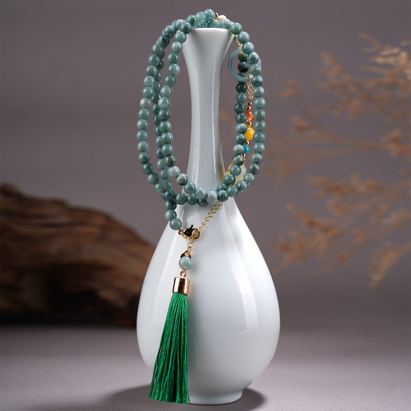 - Pendant Elements: Jade gourd charm and jade sliding bead