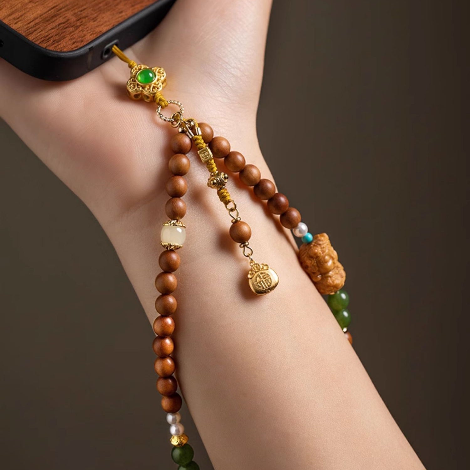 Enhance your fortune and embrace positive energy with our authentic Sandalwood Green Jade Buddha Fortune Money Bag Phone Charm. This exquisite charm is meticulously crafted with sandalwood and green jade beads, featuring a Buddha and money bag pendant. Experience the power of spirituality in a compact accessory.