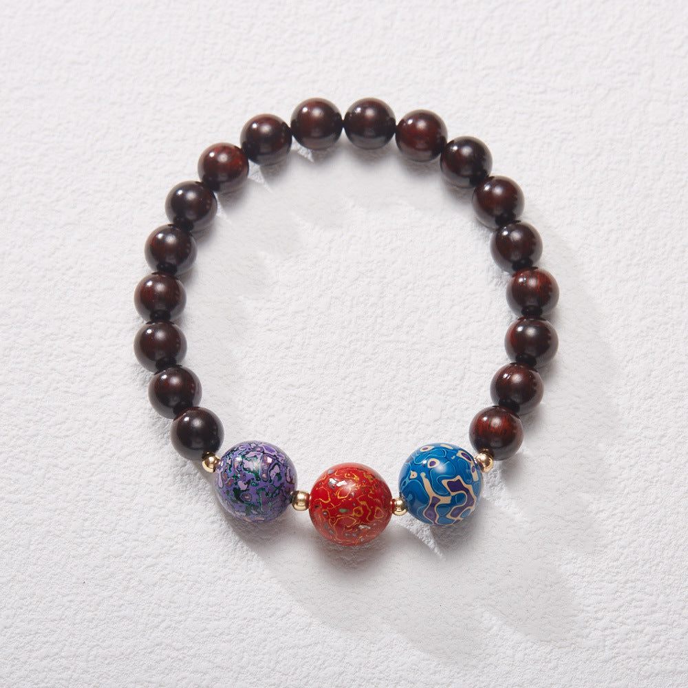 Small Leaf Red Sandalwood with colorful lacquer beads Serenity Bracelet